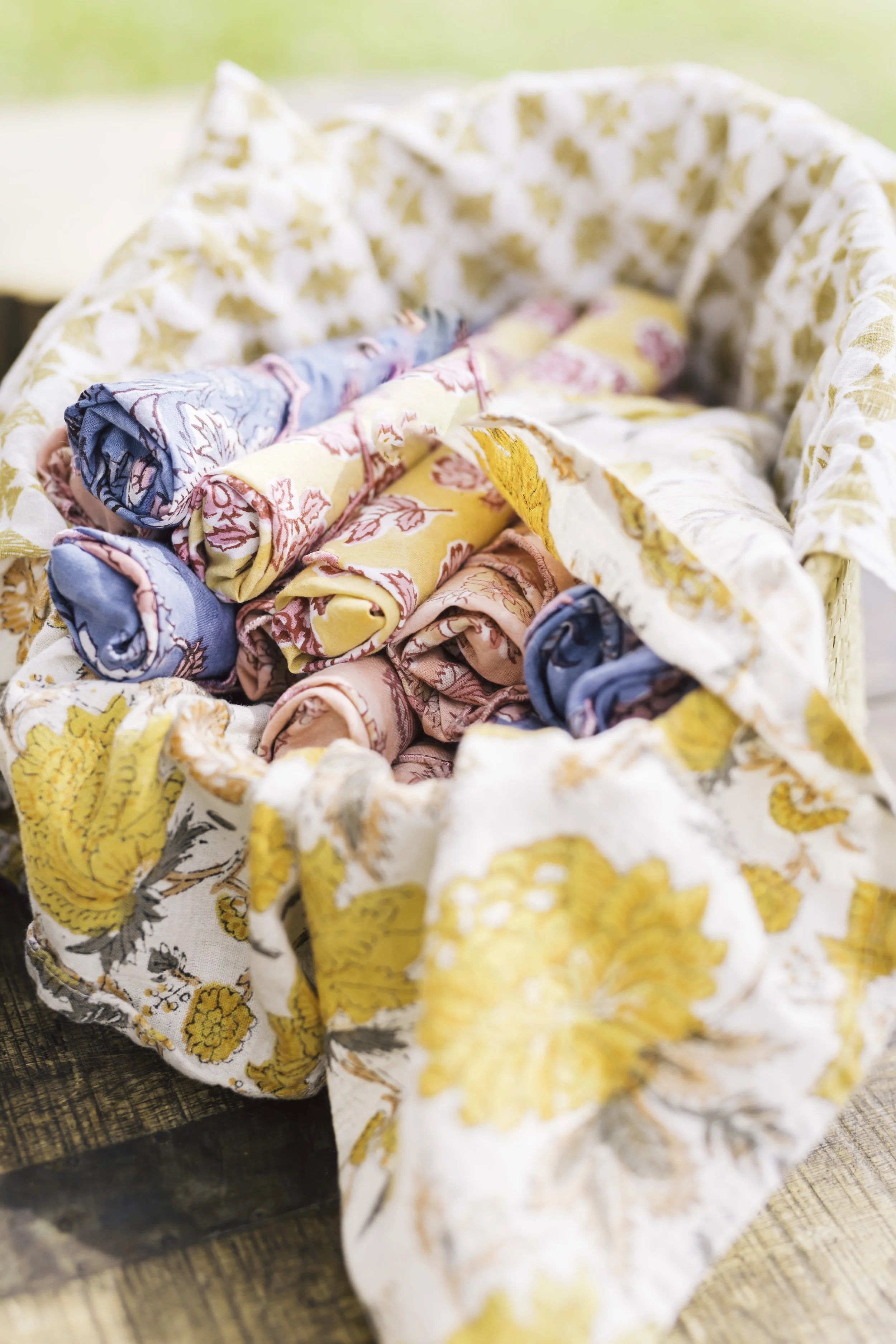 We wrapped utensils in country-style floral napkins and placed them in a basket at the end of the food table.