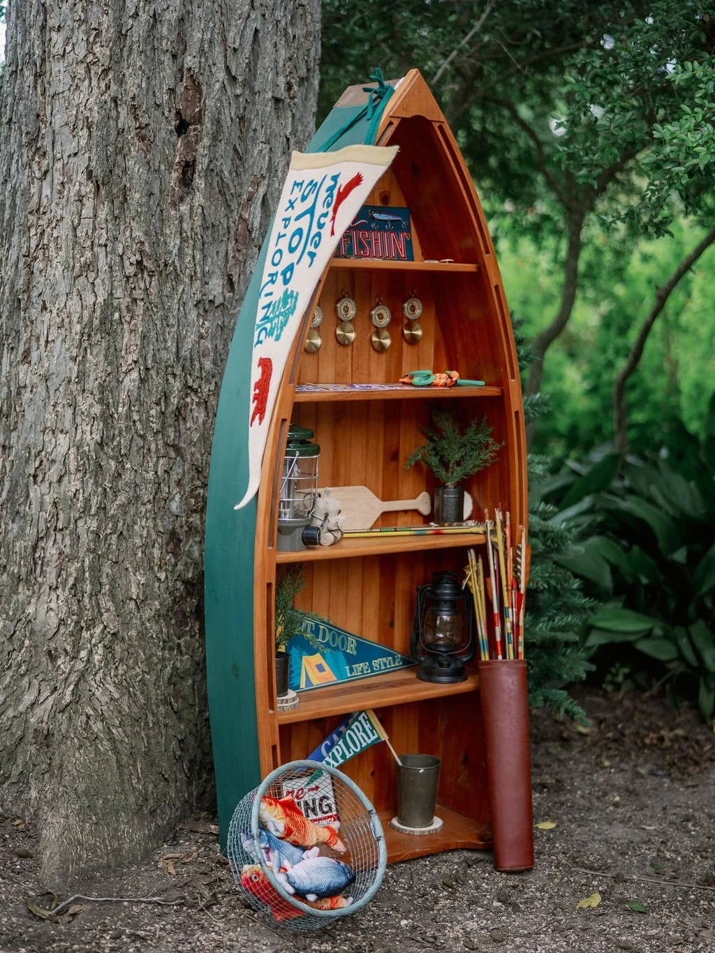 To hold some of the props, I set up a canoe-inspired set of shelves.