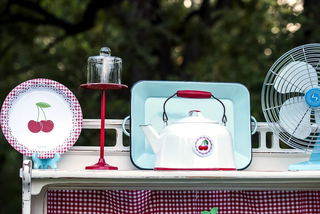 I love incorporating vintage items in the parties I style. From the retro blue fan to the tea pot and the old-fashioned bicycle, I really think it’s unexpected details that make a party special.