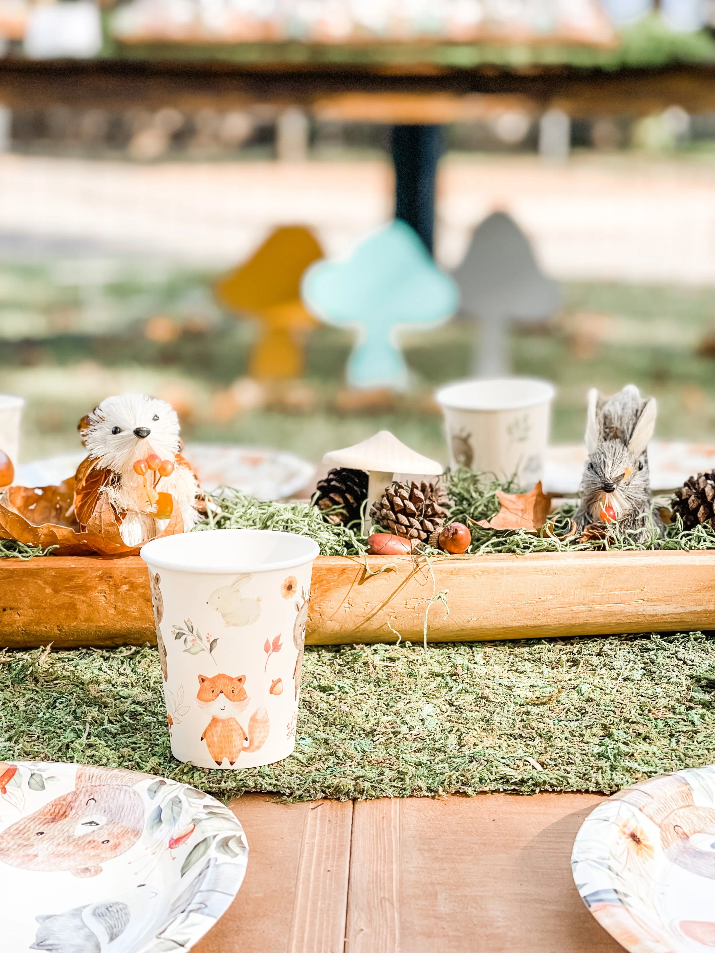 I also added a long wooden centerpiece to the middle of the table, which held many more woodland creatures and props that really made the table feel like it was part of an enchanted forest floor!